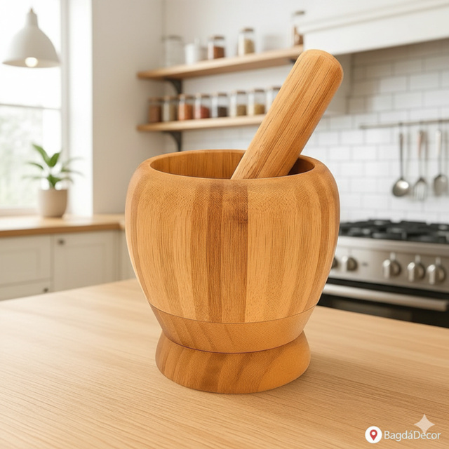 Socador Pilão Bambu Natural 🔝 Amassador de Alho, Ervas, Frutas e Condimentos | Cozinha Madeira