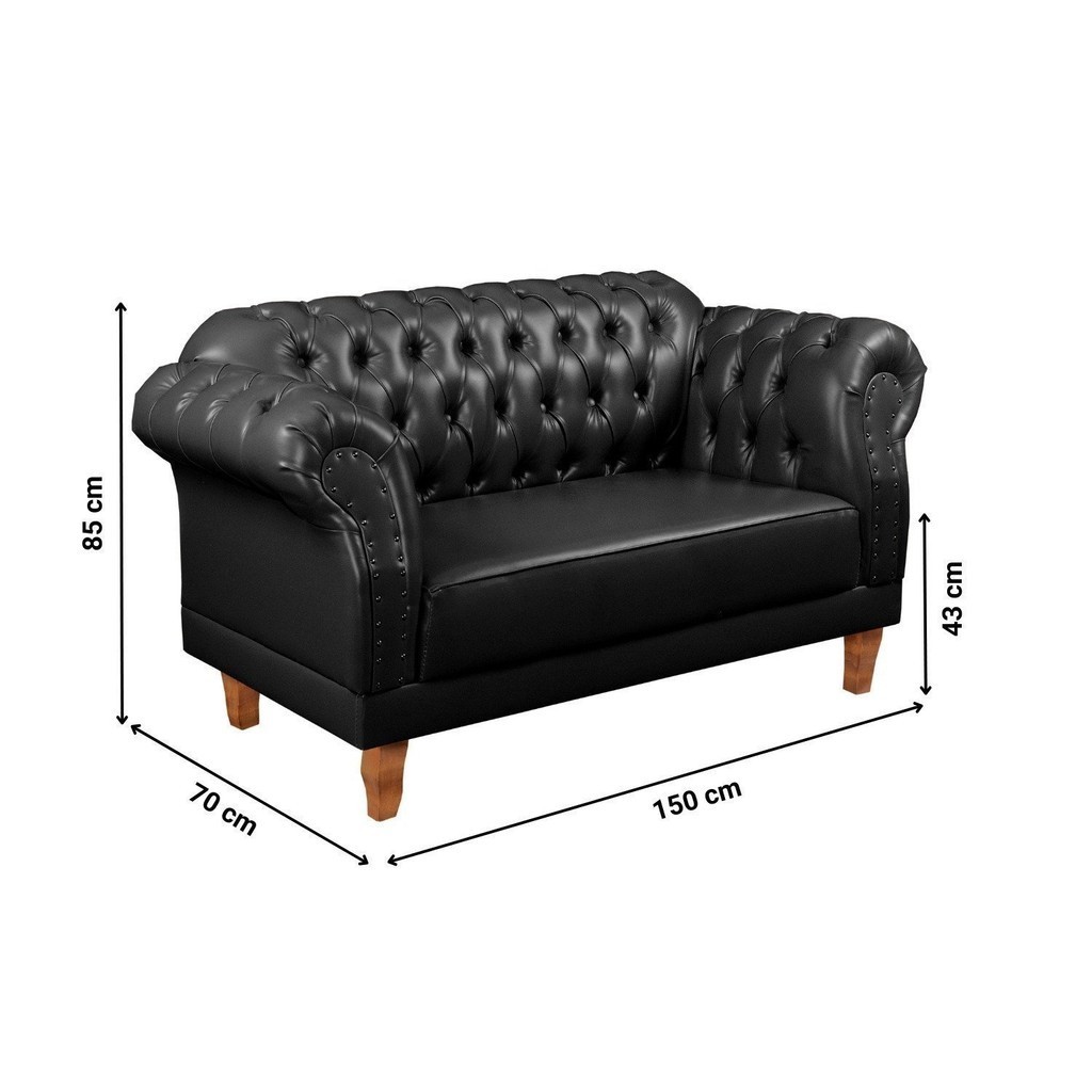 Sofá 2 Lugares Chesterfield Clássico Duque Preto