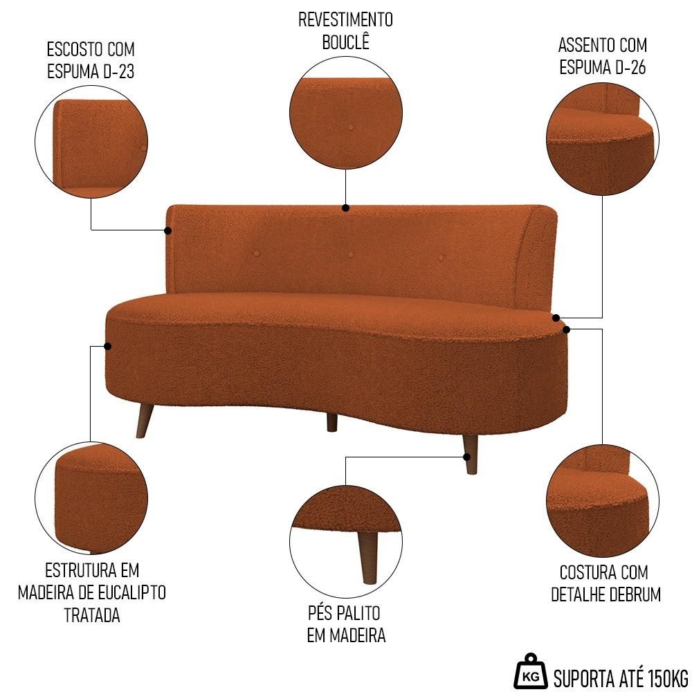 Sofá 2 Lugares para Sala Living 135cm Pés Palito Korah K04 Bouclê Terracota - Mpozenato