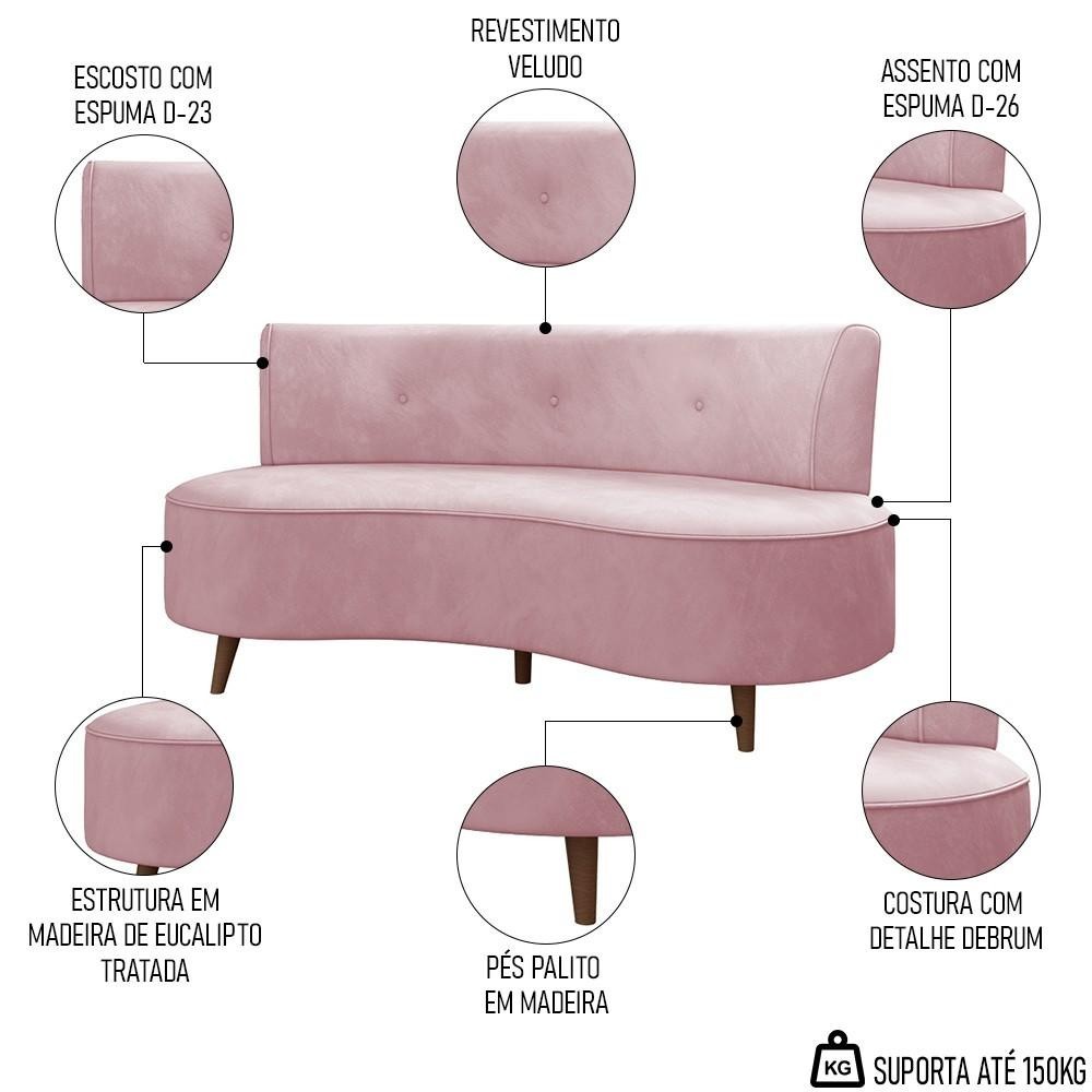 Sofá 2 Lugares para Sala Living 135cm Pés Palito Korah Z08 Veludo Rosê - Mpozenato