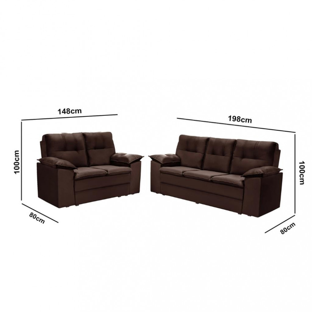 O conjunto de sofás Egito é estofado, confortável e moderno. Composto por dois sofás (2 e 3 lugares) e revestido de tecido veludo, combina amplo espaço com conforto e durabilidade. Características: Estrutura em madeira maciça Eucalipto/Pinus Almofadas do assento e encosto fixas 5 lugares 5 Pés em PVC Percintas Elásticas Braço em espuma D20 Assento em espuma D28 Enchimento do Encosto em fibra siliconada Revestimento em tecido Veludo Suporta até 120 kg por assento Recomendações de manutenção: limpar com detergente neutro e pano úmido, não usar produtos abrasivos, não utilizar o aspirador em potência máxima nos encosto e braços para não repuxar fios. Dimensões Sofá 2 Lugares: Altura: 100 cm Largura: 148 cm Profundidade: 80 cm Dimensões Sofá 3 Lugares: Altura: 100 cm Largura: 198 cm Profundidade: 80 cm Peso: 69,26 kg Garantia do fornecedor de 3 meses
