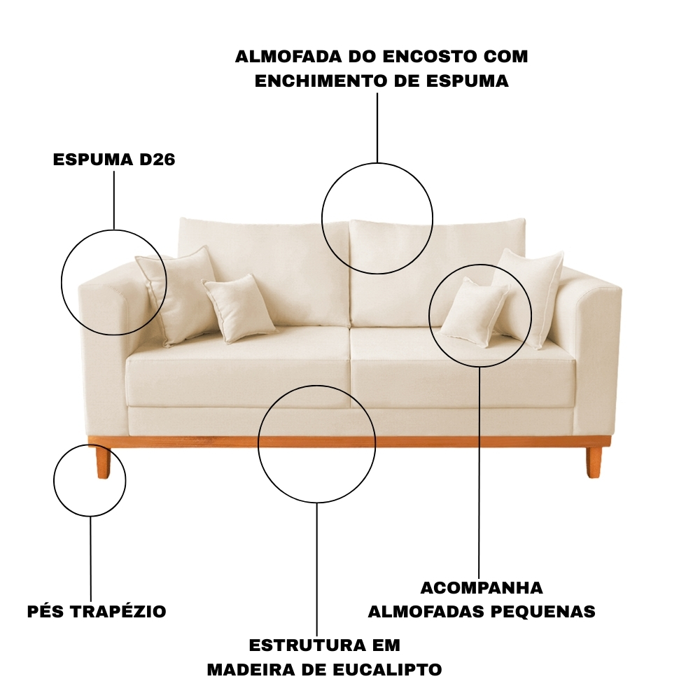 Sofá Beny 03 Lugares Transforme sua sala em um ambiente ainda mais acolhedor e sofisticado com o Sofá Beny. Desenvolvido para unir design moderno, conforto e durabilidade, ele é a escolha ideal para quem busca um móvel elegante sem abrir mão da resistência e da qualidade. Sua estrutura em madeira de eucalipto garante alta durabilidade e excelente sustentação, enquanto a base com pés em formato trapézio proporciona estabilidade e um visual contemporâneo que valoriza qualquer ambiente. O assento com espuma de densidade D26 oferece conforto equilibrado para o uso diário, e o encosto com almofadas macias proporciona uma experiência relaxante, ideal para momentos de descanso, leitura ou para receber visitas com muito mais comodidade. O sofá acompanha almofadas decorativas, que acrescentam charme e sofisticação ao ambiente, deixando sua sala ainda mais elegante. Seu revestimento em linho de alta qualidade garante um acabamento refinado e agradável ao toque, além de maior durabilidade. O Sofá Beny é perfeito para quem busca um móvel bonito, resistente e confortável para compor a decoração da casa. DIMENSÕES DO PRODUTO Altura total: 77 cm Largura total: 180 cm Profundidade total: 80 cm Altura do assento (do chão): 46 cm Profundidade do assento: 63 cm Largura do assento: 150 cm Altura do encosto: 34 cm Espessura do assento: 17 cm Altura dos pés: 13 cm Altura do braço (do chão): 70 cm Espessura do braço: 15 cm Altura interna do braço: 25 cm Peso total: 35 kg ESPECIFICAÇÕES DO PRODUTO Estrutura: Madeira de Eucalipto Espuma: Densidade D26 Tipo de pés: Trapézio Peso suportado: Até 180 kg Garantia: 90 dias contra defeitos de fabricação Montagem: Produto enviado praticamente montado, sendo necessário apenas rosquear os pés. Instruções de Limpeza: Para a limpeza, utilize apenas pano levemente úmido com sabão neutro. Evite produtos químicos abrasivos para preservar o tecido. Conteúdo da Embalagem: 01 Sofá Beny enviado em 01 volume OBSERVAÇÕES IMPORTANTES: Os produtos são cuidadosamente embalados para garantir segurança no transporte. As cores podem variar dependendo das configurações do seu monitor. Não garantimos a mesma tonalidade de cor para futuras compras devido à variação de lote do fabricante. As imagens são ilustrativas e não acompanham objetos de decoração ou eletrodomésticos. Certifique-se de que as dimensões do produto são compatíveis com escadas, elevadores, portas e corredores de sua residência. Por ser um produto estofado, as medidas podem ter variação de até 3 cm. A montagem, desmontagem ou instalação do produto não estão inclusas no serviço de entrega. A entrega não contempla subir escadas, elevadores ou uso de guinchos para pisos superiores. A entrega é realizada em todo o território nacional, conforme acessibilidade por rodovias; entregas fluviais ou aéreas devem ser cotadas à parte. Seguindo essas orientações, evitam-se contratempos com a entrega. Custos adicionais, se houver, são de responsabilidade do cliente. FAQ – PERGUNTAS FREQUENTES • O STATUS DO MEU PEDIDO APARECE COMO ENVIADO, MAS NÃO CONSIGO RASTREAR Após a confirmação da compra, todos os pedidos passam pelo nosso processo de produção. O prazo pode variar conforme o volume de pedidos e períodos de maior demanda, como datas comemorativas. Assim que o produto for despachado, o link de rastreamento será atualizado. Basta acessar o link disponibilizado para acompanhar o andamento da entrega. • ACABEI DE COMPRAR E COLOQUEI O ENDEREÇO ERRADO. PRECISO CANCELAR A COMPRA PARA ALTERAR? Não é necessário cancelar a compra. Conseguimos alterar o endereço em até 48 horas após a confirmação do pedido. Basta enviar pelo chat da sua compra o endereço completo com CEP para que possamos realizar a atualização. • QUAIS SÃO AS CORES E TECIDOS DISPONÍVEIS? No tecido Suede temos: Preto, Vermelho, Terracota, Bege, Azul Marinho, Rosa, Amarelo, Verde e Cinza. No tecido Linho temos: Bege, Grafite, Cinza, Azul Marinho, Preto, Terracota e Verde. No tecido Corino (pode haver diferença de valor): Bege, Marrom, Preto e Terracota. • VOCÊS FAZEM PRODUTOS COM MEDIDAS DIFERENTES DO ANÚNCIO OU PERSONALIZADOS? No momento, não fabricamos produtos sob medida e não realizamos personalização com outros materiais ou medidas diferentes das informadas no anúncio. • COLOQUEI MEU CEP E APARECE COMO ENDEREÇO NÃO SUPORTADO Infelizmente ainda não conseguimos realizar entregas em algumas regiões. Estamos trabalhando para ampliar nossa área de atendimento e, em breve, atender mais localidades em todo o Brasil.