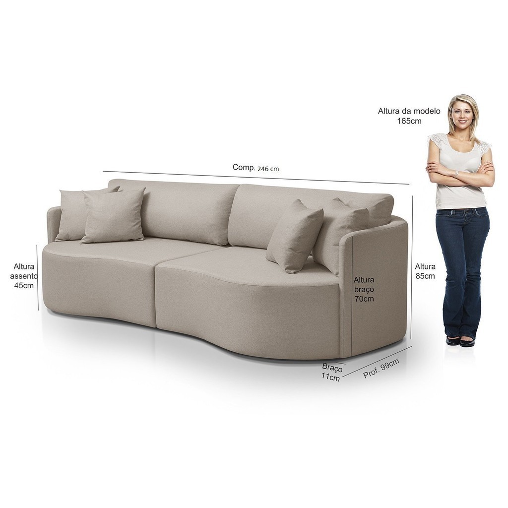 Sofá 3 Lugares 246 Cm Dakota Braços Redondos Bege