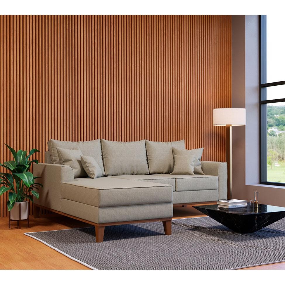 Que tal o Sofá Beny?Com firmeza e design excepcionais, o Sofá Beny é uma aquisição indispensável para quem quer uma sala de estar preparada para qualquer atividade do dia a dia, sejam aquelas mais sociais ou as em família. Estruturado em madeira de eucalipto, que garante uma ótima estabilidade, ele conta com enchimento em espuma e molas, sem contar nas percintas elásticas no assento, que garantem boa durabilidade e evitam aquela aparência desgastada com o tempo. Já visualmente, ele vai agregar muito ao seu ambiente graças ao revestimento em linho, um tecido macio e clássico, além, é claro, da chaise, que oferece um ar requintado ao lar-style. Dono de uma cor tradicional, ele tem todos os atributos para se tornar a estrela do seu espaço receptivo! Cor: Bege Garantia em Meses: 3 Cores do Produto: Bege Instruções/Cuidados: Para limpar, utilize pano seco ou papel absorvente. Não armazenar em local úmido. Não usar produtos químicos como detergente, cloro, alvejantes entre outros. Evitar exposição a luz solar direta por longos períodos. O consumidor perderá total garantia se f Conteúdo da Embalagem: 1 Sofá (Acompanha almofadas decorativas) - Entregue em: 2 Volumes Modelo: Com Chaise Número de Volumes: 2 Material: O Sofá Beny possui estrutura em madeira eucalipo 25mm e MDF 15mm, assento em espuma D26, encosto em plumante 100% siliconado, pés em madeira e revestimento em linho Material para Filtro: Eucalipto Descrição do Tamanho: Altura: 82 cm | Largura: 200 cm | Profundidade Sofá: 80 cm | Profundidade Chaise: 164 cm Altura do Produto (cm): 82 Largura do Produto (cm): 200 Comprimento do Produto (cm): 164 Peso do Produto (Kg): 63.95 Produto precisa de Montagem?: Sim, instalação dos pés Tipo de Encosto: Fixo Tipo de pé: Removível Altura do assento até o chão (cm): 42 Material da estrutura: Eucalipto Material do enchimento do assento: Espuma D26 Material do enchimento do encosto: Plumante Material do Revestimento: Linho Possui Baú?: Não Tipo de assento: Fixo Material dos pés: Madeira PROFUNDIDADE x LARGURA x ALTURA: 164 x 200 x 82 Fornecedor: Lidiane M. T. A. Batista - ME É com chaise: Não É sofá-cama: Não Tipo de produto: Sofá É de canto: Não Baterias são necessárias?: Não Certificação de teste externa: Não Componentes incluídos: Não Is Fragile: Não Número da peça: Não Produto: Sofá É reclinável: Não Quantidade de lugares: 3 Tipo do Sofá: null Inclui manual de montagem: Não