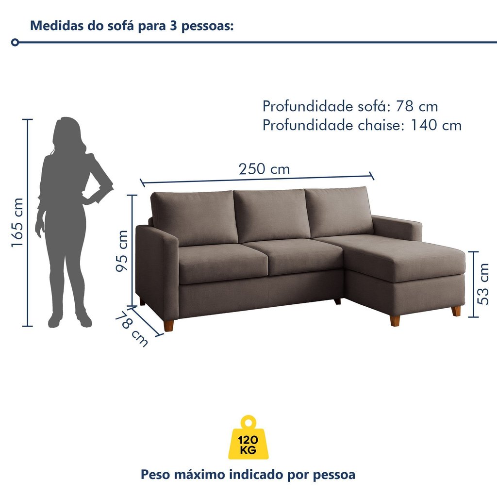 Sofá 3 Lugares com Chaise Moov Yescasa Bege