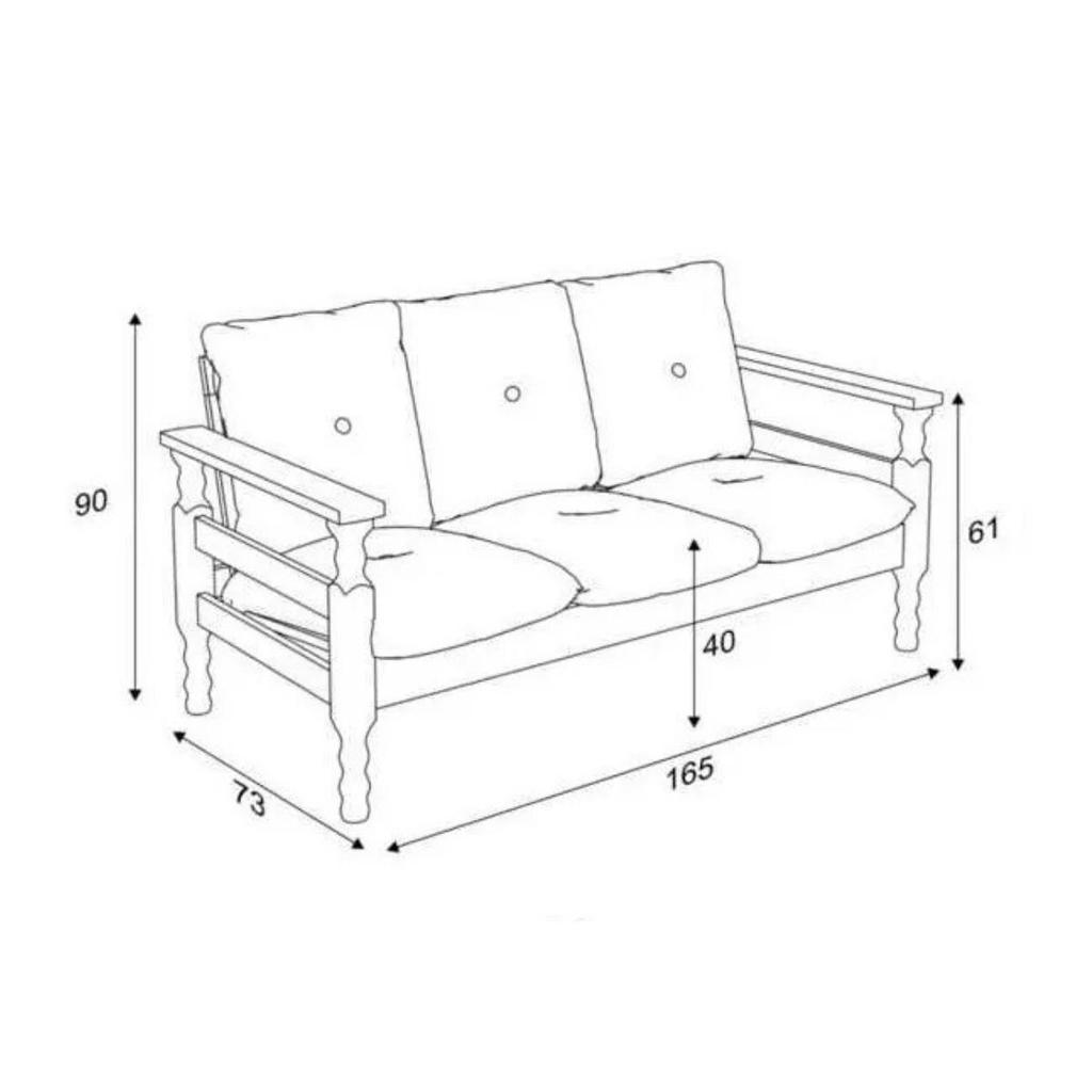 O Sofá 3 lugares Madeira Maciça Liz Multimóveis é produzido em madeira maciça (pinus) proveniente de reflorestamento e possui almofadas soltas preenchidas com flocos de espuma e revestidas em poliéster, que garante maior conforto e durabilidade. Uma ótima opção para deixar sua sala de estar acolhedora para curtir os melhores momentos com a família ou amigos. Além disso, suporta até 260kg. Conteúdo da Embalagem: 1 (um) sofá 3 lugares com almofadas Manual de Montagem Kit Ferragem Dimensões do produto montado: Altura: 90cm | Largura: 165cm | Profundidade: 73cm *Você pode consultar as medidas internas na imagem técnica do produto. *As cores do produto podem sofrer variações de tonalidade de acordo com as configurações do seu dispositivo. Imagem meramente ilustrativa. Decoração não acompanha o produto. O produto será entregue desmontado e não disponibilizamos o serviço de montagem.