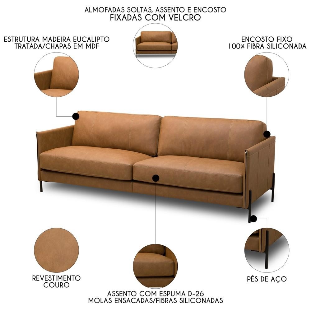 Sofá 3 Lugares Para Sala Living 210cm Bliss L08 Couro Camel - Mpozenato