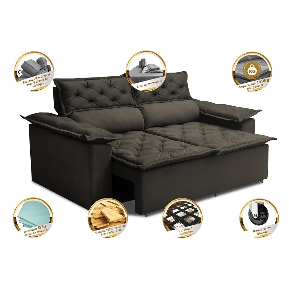 Sofá 3 Lugares Retrátil e Reclinável Cama inBox Compact 1,80m Velusoft Café