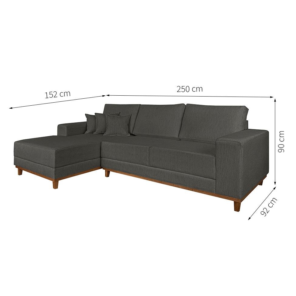Que tal o Sofá Mônaco?Sofás são fundamentais para que a sua sala fique mais receptiva, tanto para receber as visitas quanto para curtir aquele momento relax em frente à televisão. Por isso, o Sofá Mônaco é uma ótima pedida para entrar no seu time de móveis. Estruturado em madeira eucalipto, ele possui chaise esquerdo - o que facilita na hora de esticar as pernas para descansar - e revestimento em linho, agregando um valor estético incrível para a sua casa. Já a cor cinza ajuda a compor a paleta de cores do espaço sem dificuldades, uma vez que é simples de inserir em qualquer ambiente. Cor: Cinza Garantia em Meses: 3 Cores do Produto: Cinza Instruções/Cuidados: Pano seco Conteúdo da Embalagem: 1 Sofá (Acompanha Almofada Decorativa) - Entregue em: 2 Volumes Modelo: Com Chaise Número de Volumes: 2 Material: O Sofá Mônaco possui estrutura em eucalipto 25mm, percinta elástica e molas. O encosto tem enchimento em fibra siliconada e o assento é em espuma D28. Já o revestimento é em linho com acabamento em costura rebatida Material para Filtro: Eucalipto Descrição do Tamanho: Altura: 90 cm | Largura: 250 cm | Profundidade: 152 cm Altura do Produto (cm): 90 Largura do Produto (cm): 250 Comprimento do Produto (cm): 152 Peso do Produto (Kg): 65 Produto precisa de Montagem?: Sim, instalação dos pés Tipo de Encosto: Fixo Tipo de pé: Fixo Altura do assento até o chão (cm): 46 Material da estrutura: Eucalipto Material do enchimento do assento: Espuma D28 Material do enchimento do encosto: Fibra de Silicone Material do Revestimento: Linho Possui Baú?: Não Tipo de assento: Fixo Material dos pés: Tauari PROFUNDIDADE x LARGURA x ALTURA: 152 x 250 x 90 Fornecedor: LE ESTOFADOS LTDA É com chaise: Não Tipo de produto: Sofá É sofá-cama: Não É de canto: Não Baterias são necessárias?: Não Certificação de teste externa: Não Componentes incluídos: Não Is Fragile: Não Número da peça: Não Produto: Sofá É reclinável: Não Quantidade de lugares: 4 Tipo do Sofá: null Inclui manual de montagem: Não