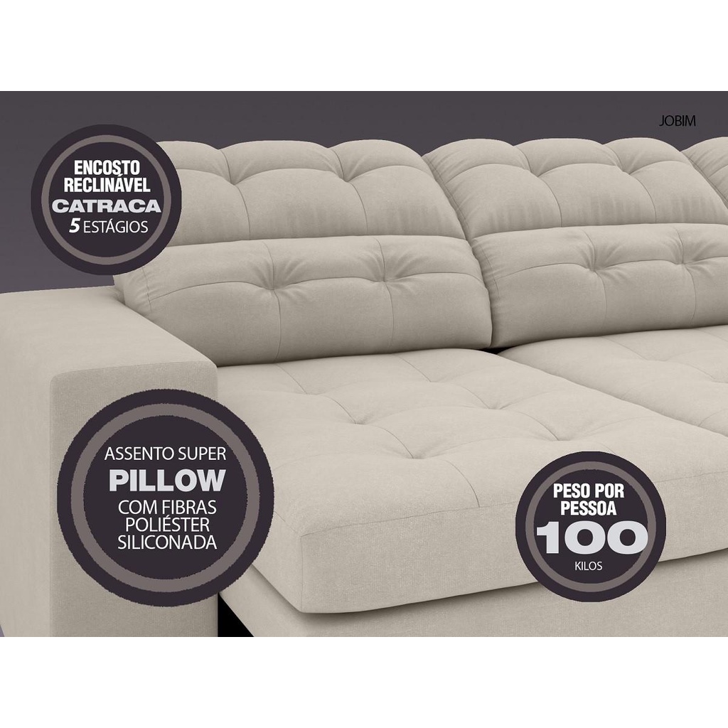 Sofá 4 Lugares Net Jobim Assento Retrátil e Reclinável Areia 2,30m (L)