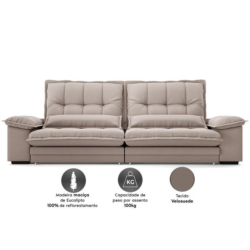 Sofá Bergamo 2,90m Assento Retrátil e Reclinável Velosuede Bege - NETSOFAS