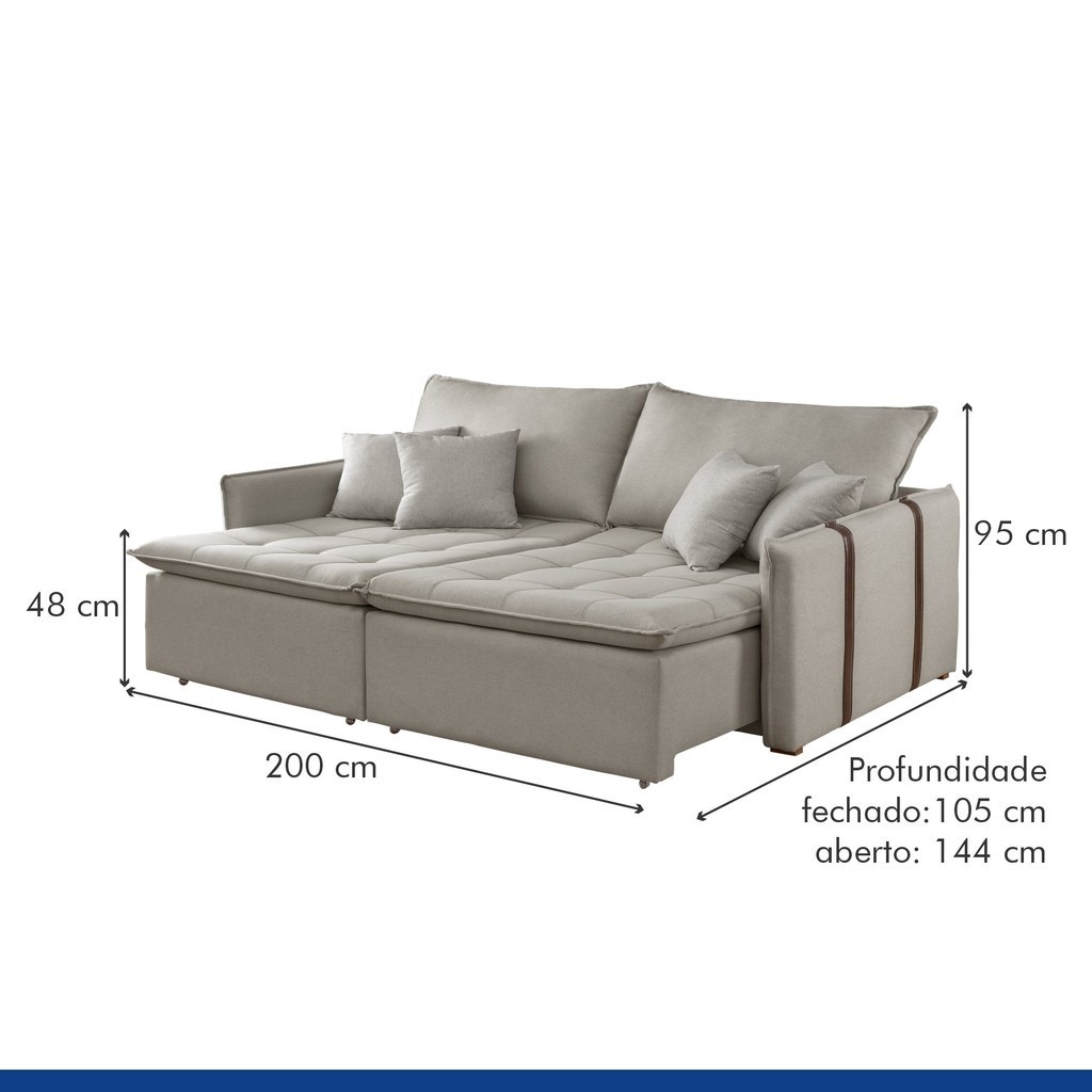 Sofá Cama 3 Lugares Retrátil 200cm Detroid Yescasa Linho Cinza Linho Gelo