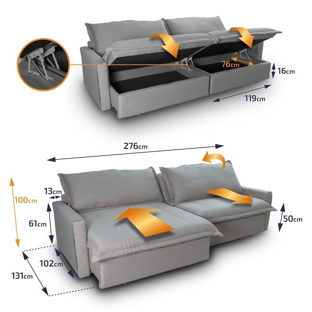 Sofá Cama Baú Ravello Sem Caixa 2,76m Linho Cinza 3 Lugares