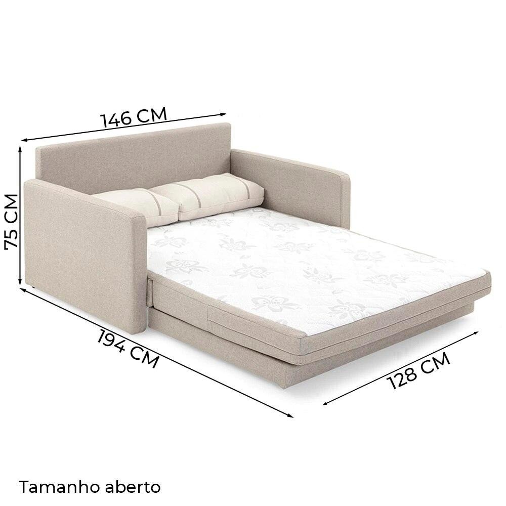 Sofá-Cama Casal 2 Lugares Herval Aurora, Linho Bege, 146 cm