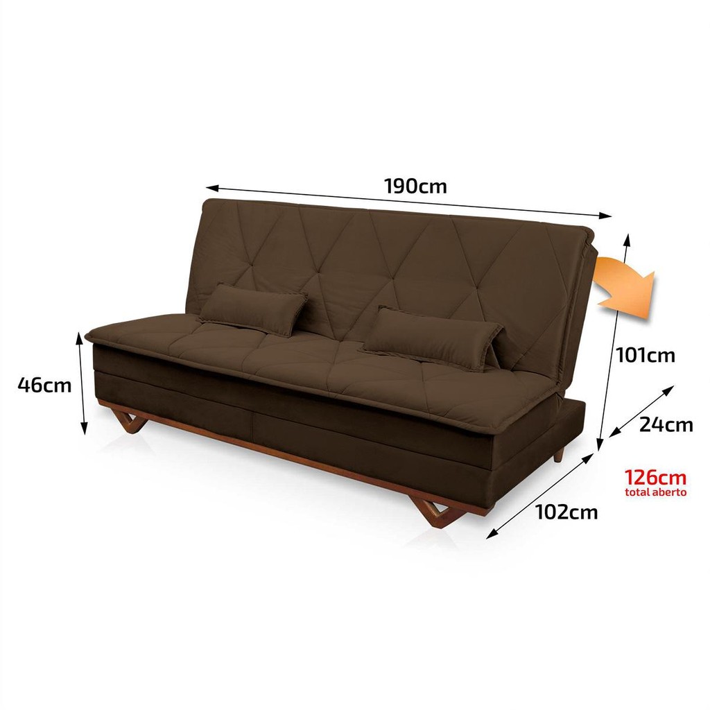 Sofá Cama Estoril 1,90m Marrom Suede Velut - King House
