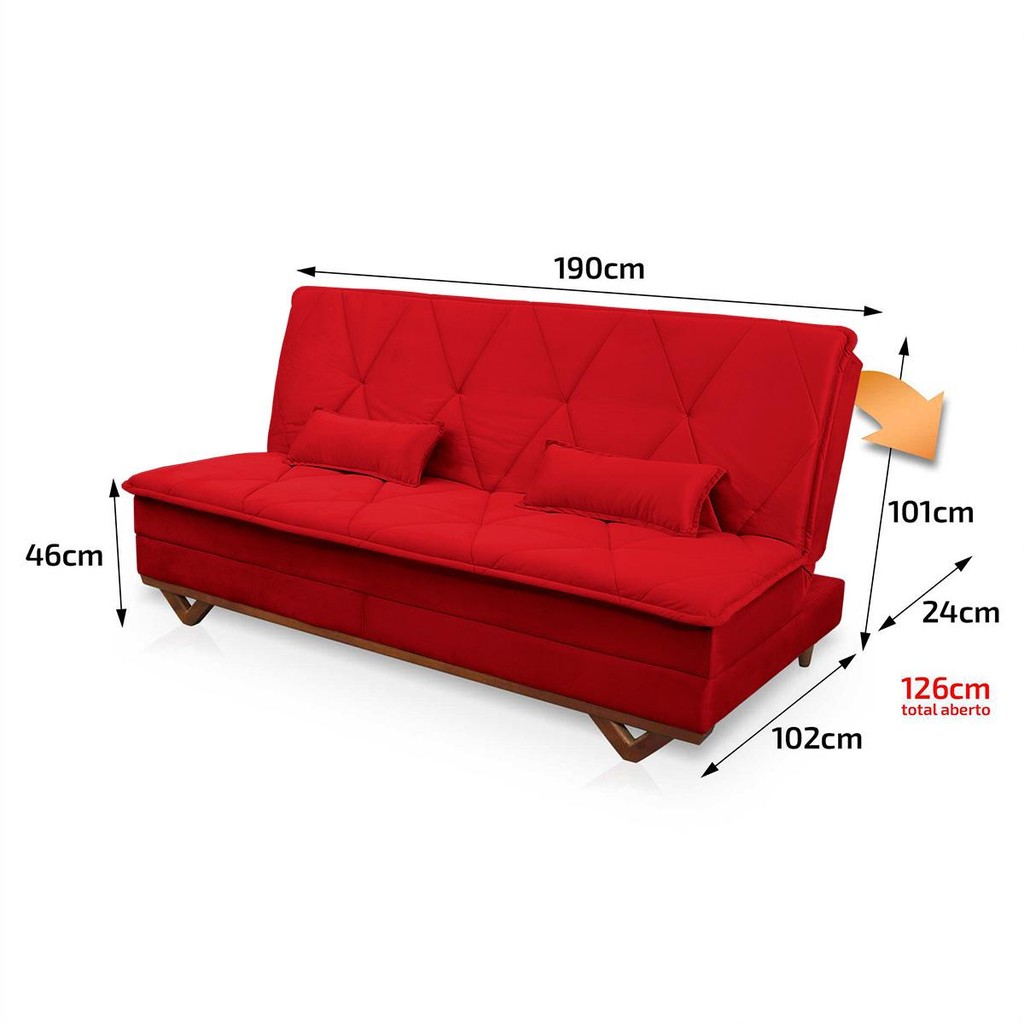 Sofá Cama Estoril 1,90m Vermelho Suede Velut - King House