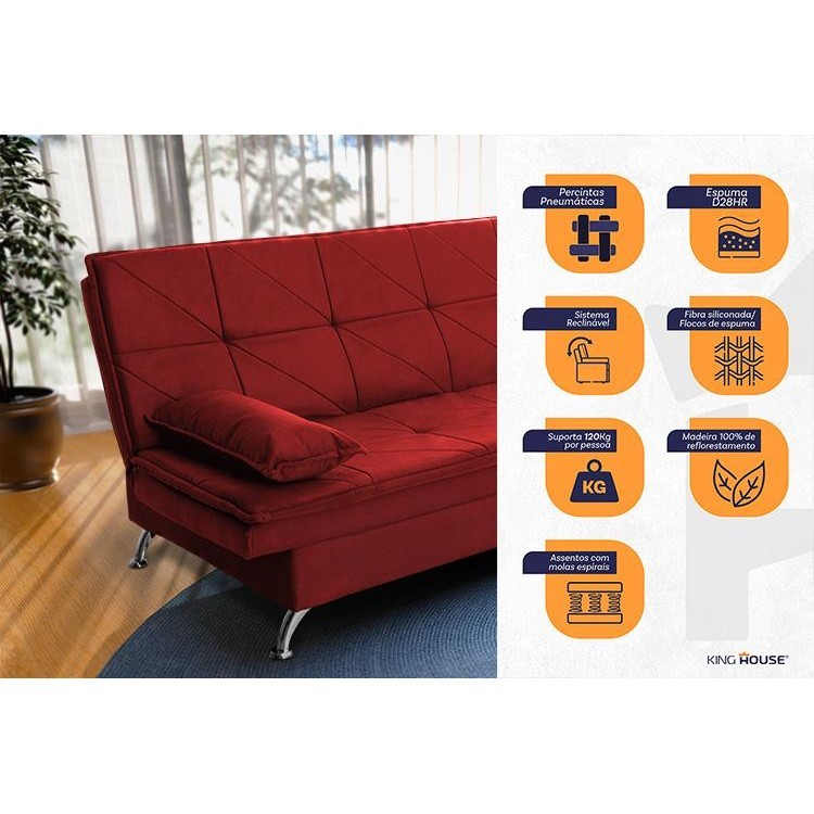 Sofá Cama Pérsia 3 Lugares Suede Velut Vermelho - King House