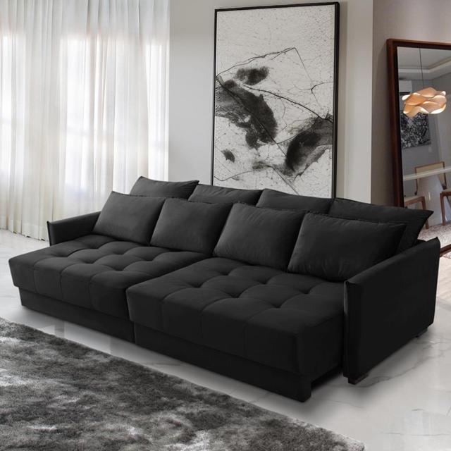 Sofá Cama Retrátil e Reclinável 2,10m com Molas Carol Veludo Preto Adonai Estofados
