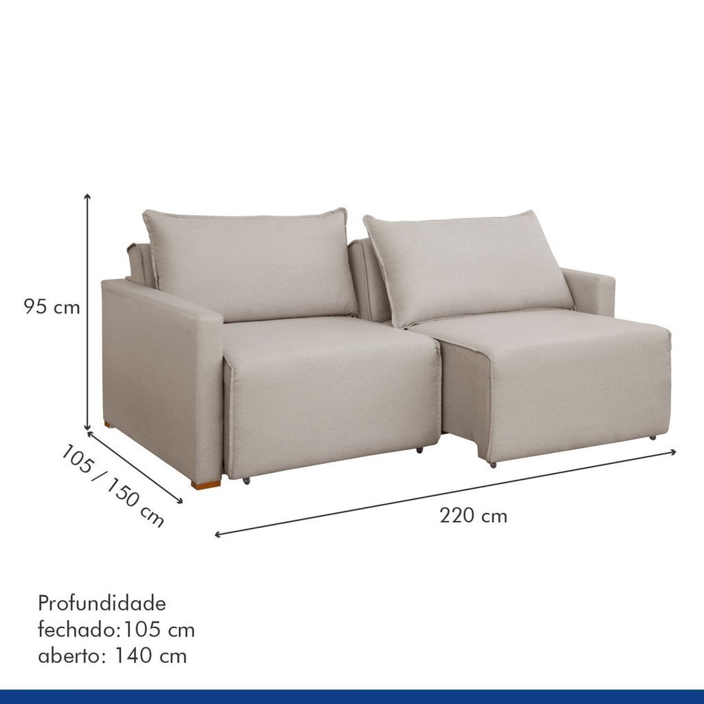 Sofá Cama Retrátil e Reclinável 220cm Júlia Veludo Veludo/Bege Claro