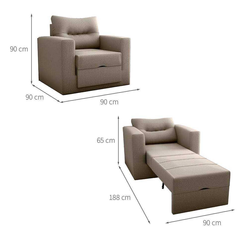 Que tal o Sofá-Cama Marissol? Móveis multifuncionais são ótimos para otimizar a rotina e o espaço no cômodo. O Sofá-Cama Marissol, por exemplo, é compacto quando utilizado como assento comum no dia a dia, mas rapidamente se transforma em uma cama nos padrões de solteiro e acomoda superbem uma visita especial - o enchimento que une espuma de diferentes densidades fica responsável por proporcionar todo o bem-estar necessário. Com estrutura resistente, o móvel é produzido em madeira de reflorestamento e, para usar como cama, basta retirar a almofada, puxar o assento para frente e abrir os pés dobráveis. Incrível, né? Cor: Capuccino Garantia em Meses: 3 Cores do Produto: Capuccino Instruções/Cuidados: Limpar com pano seco Conteúdo da Embalagem: 1 Sofá-Cama (Acompanha 1 almofada decorativa) - Entregue em: 1 Volume Modelo: Retrátil e Reclinável Número de Volumes: 1 Material: O Sofá-Cama Marisol possui estrutura em eucalipto 12mm, encosto com enchimento em espuma D14, assento com enchimento em D23 e revestimento em suede Material para Filtro: Eucalipto Descrição do Tamanho: Aberto: Altura: 65 cm | Largura: 90 cm | Profundidade: 188 cm / Fechado: Altura: 90 cm | Largura: 90 cm | Profundidade: 90 cm Altura do Produto (cm): 90 Largura do Produto (cm): 90 Comprimento do Produto (cm): 90 Peso do Produto (Kg): 41 Produto precisa de Montagem?: Não Tipo de Encosto: Reclinável Tipo de pé: Fixo Altura do assento até o chão (cm): 45 Material da estrutura: Eucalipto Material do Revestimento: Suede Possui Baú?: Não Tipo de assento: Retrátil Material dos pés: PVC PROFUNDIDADE x LARGURA x ALTURA: 90 x 90 x 90 Fornecedor: MATRIX - INDUSTRIA E COMERCIO DE MOVEIS LTDA. É com chaise: Não Tipo de produto: Sofá-Cama É sofá-cama: Sim É de canto: Não Quantidade de lugares: Não Baterias são necessárias?: Não Certificação de teste externa: Não Componentes incluídos: Não Is Fragile: Não Número da peça: Não Produto: Sofá-Cama Inclui manual de montagem: Não