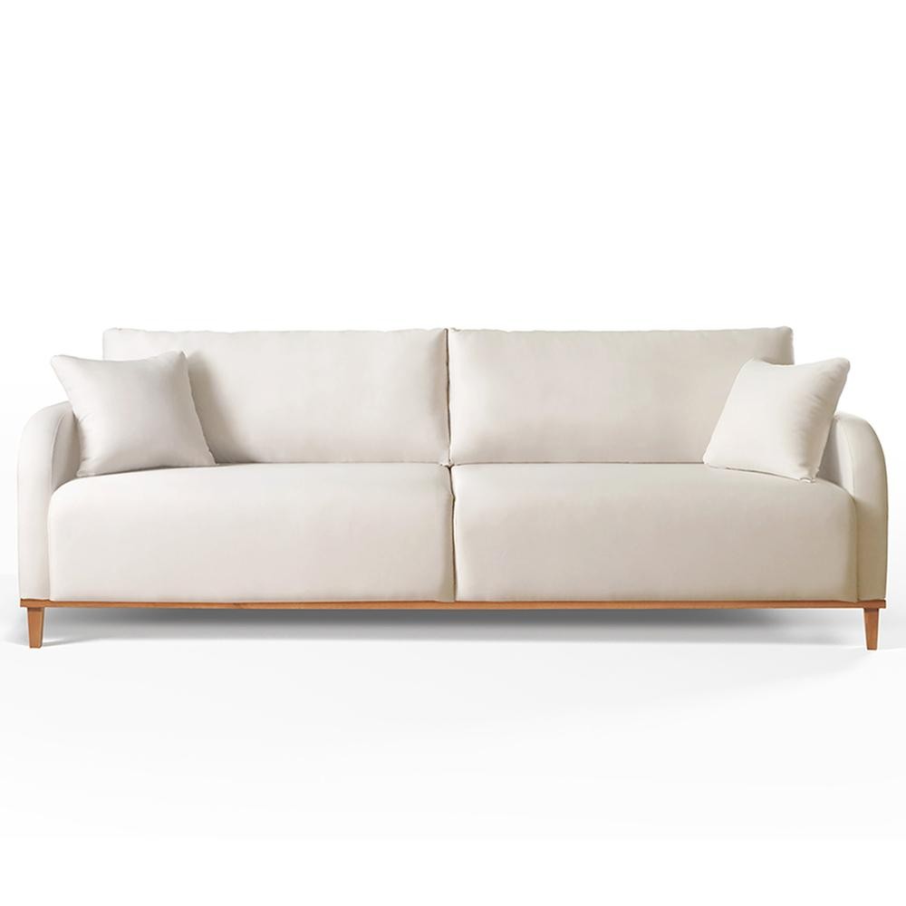 SOFÁ CAMILA O sofá Camila é um modelo elegante e atemporal, que combina a suavidade das suas linhas e braços levemente arredondados com a leveza dos pés em madeira natural. Ideal para um ambiente acolhedor, ele eleva a decoração com um toque de sofisticação e design orgânico. Dimensões: Altura: 90cm Profundidade: 90cm Comprimento: 160cm Especificações técnicas: Almofadas decorativas inclusas. Encosto com almofadas soltas de fibra 100% siliconada. Assento com espuma D28 Soft e manta acrílica. Estrutura em madeira reflorestada e pés cônicos em madeira natural. CUIDADOS: Use um pano levemente umedecido, seguido de pano seco. Evite exposição ao sol e chuva, e não utilize produtos químicos.