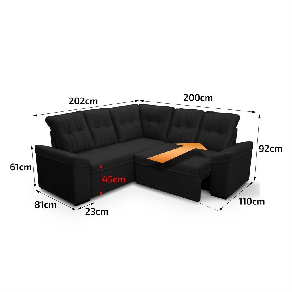 Sofá Canto London Preto Suede Velut - King House