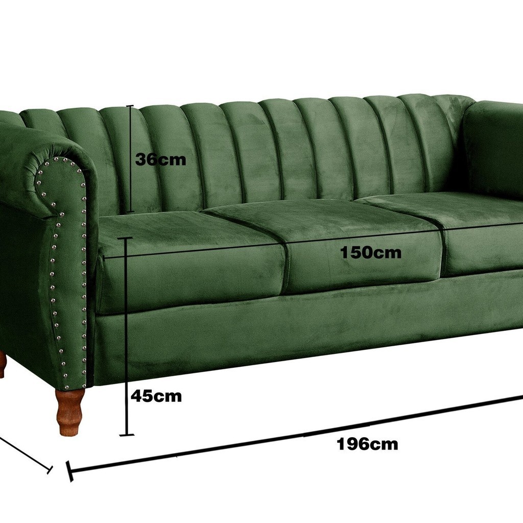 Sofá Realeza Chesterfield. Este ícone de requinte e conforto é a escolha perfeita para aqueles que buscam um toque de luxo atemporal em sua decoração. As linhas suaves e o perfil imponente trazem uma sensação de nostalgia, adicionando um toque retro-chique ao seu ambiente. Medidas: Altura: 80 cm Largura: 196 cm Profundidade: 76 cm IMPORTANTE: A tonalidade da cor do tecido pode variar de acordo com o lote do fabricante. As entregas são realizadas de segunda à sexta-feira das 8h às 18h (não é possível agendar dia ou hora). É necessário que haja uma ou mais pessoas no local para receber, desembalar, e conferir o produto. Estilo: Retrô Peso (kg): 70 Garantia: 03 Meses Altura (cm): 80 Largura (cm): 196 Possui Pés: Sim Pet Friendly: Não Tipo de Mola: Molas Ensacadas (Pocket) Tipo de Sofá: Sofás Comuns Modelo do Sofá: Sofá Fixo Possui Rodízio: Não Suporta Até (kg): 120 Profundidade (cm): 76 Tipo de Encosto: Fixo Altura do Encosto: 80 Origem do Produto: Importado Ambiente Principal: Sala de Estar Tecido Impermeável: Não Tecido Predominante: Veludo Quantidade de Lugares: 3 Serviço Impermeabilização: 102610509 Acompanha Almofadas Extras: Não Possui Percintas Elásticas: Sim Altura do Assento até o Chão: 45 Informações Complementares (Novo): 120Kg por acento Marca: BELLA DECOR Cor: Verde Cor do Produto: Verde Itens Inclusos: 1 Sofá, Manual de montagem e Kit de ferragens Cor Predominante: Verde