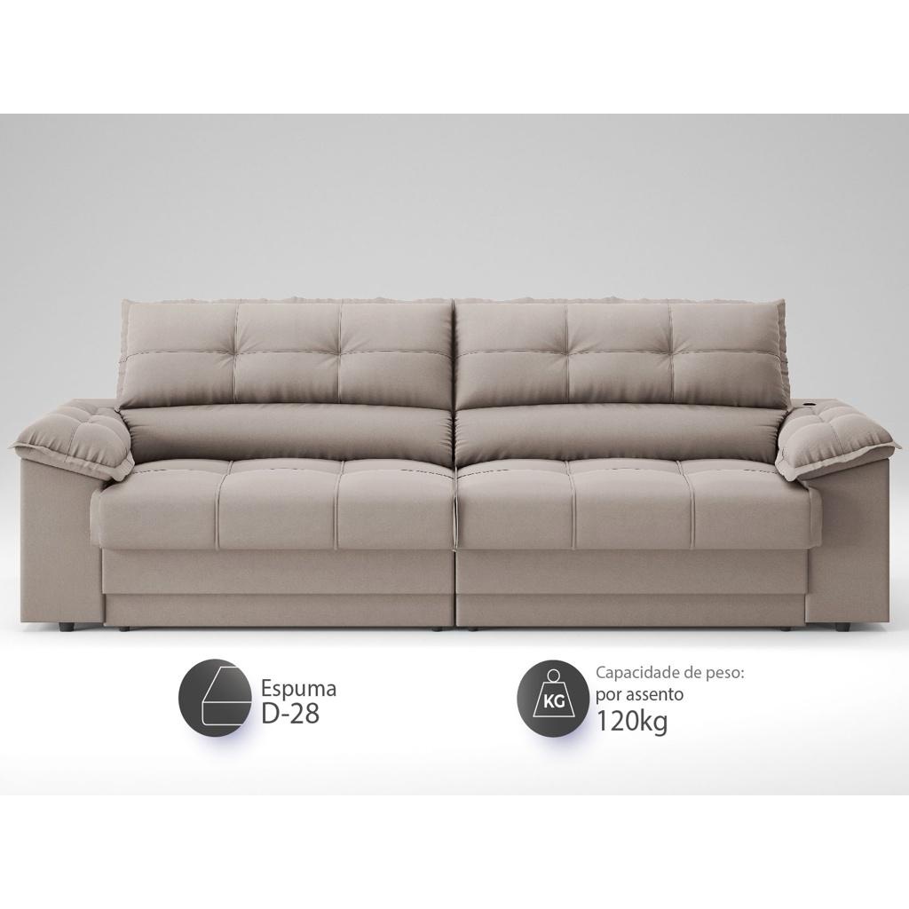 Sofá com Carregador USB Retrátil Reclinável Mimo 2,00m Velosuede Bege - NETSOFAS
