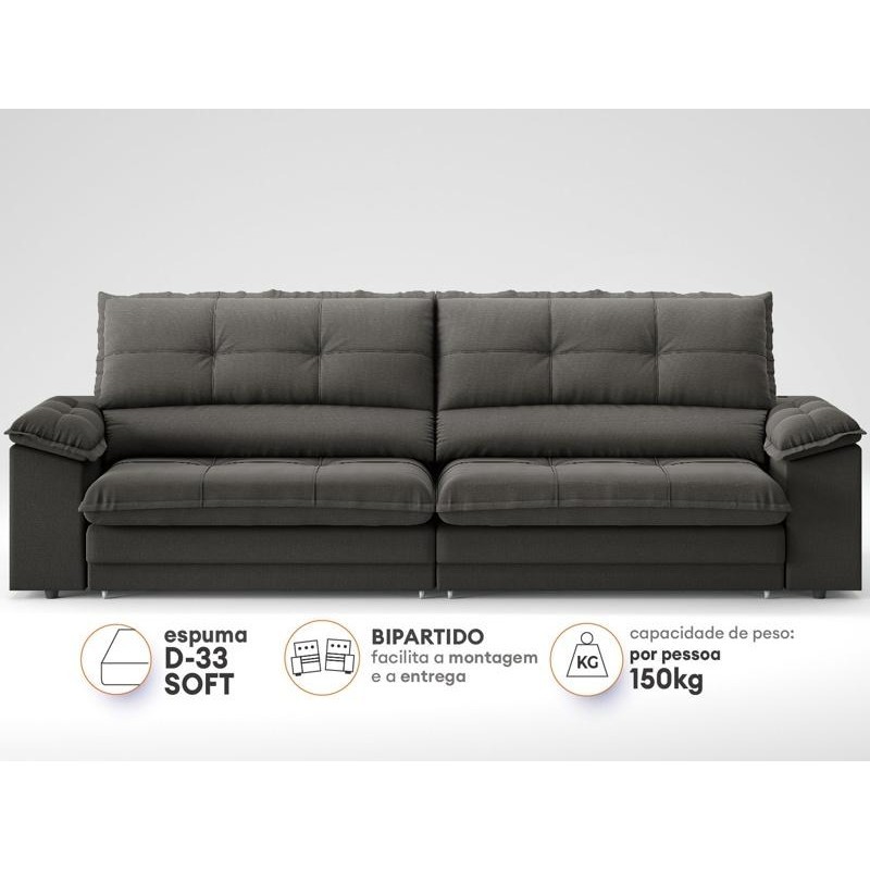 Sofá com Carregador USB Retrátil Reclinável Monaco 2,10m Velosuede Cinza - NETSOFAS