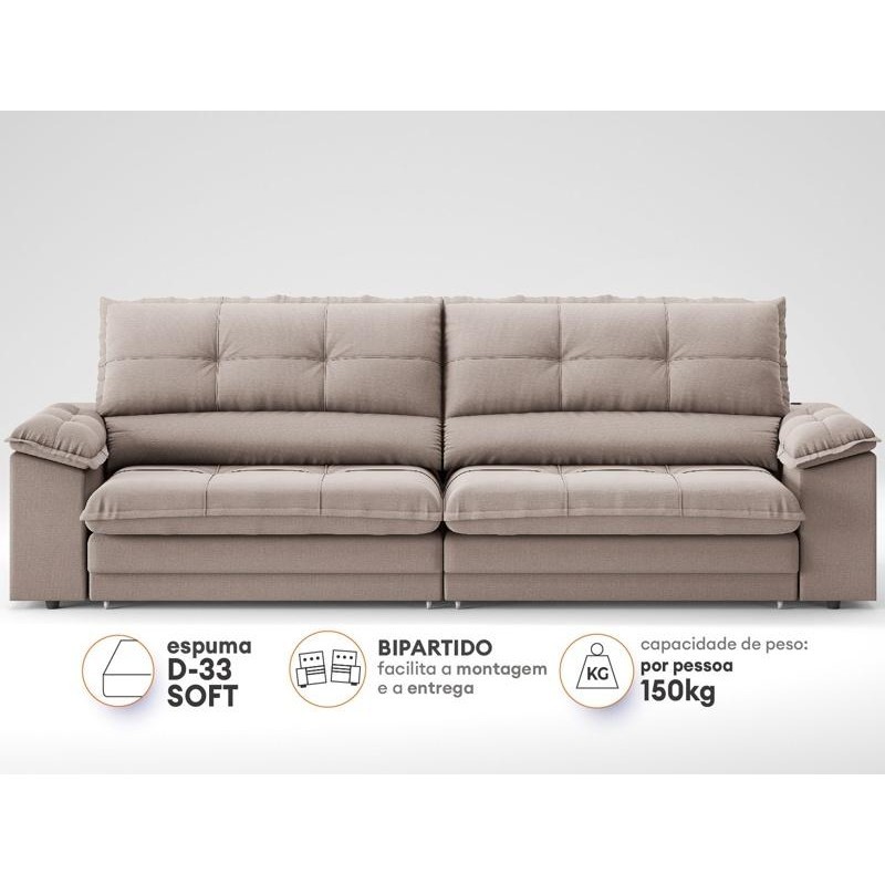 Sofá com Carregador USB Retrátil Reclinável Monaco 2,90m Velosuede Bege - NETSOFAS
