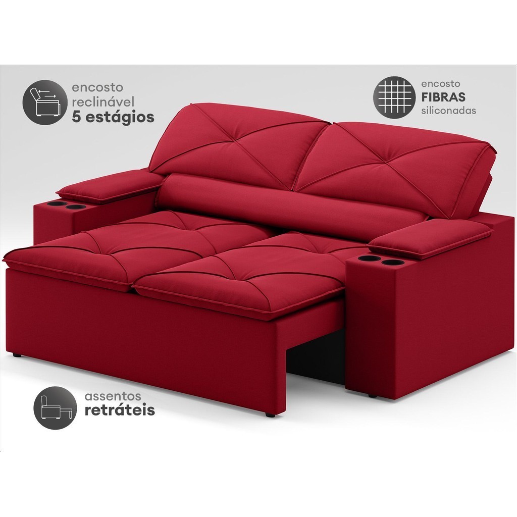 Sofá com Porta Copos Retrátil e Reclinável Pop 1,54m Velosuede Vermelho - NETSOFAS