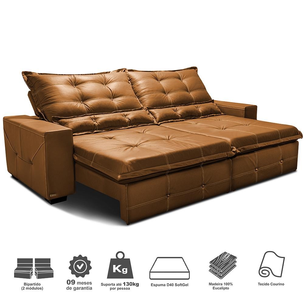 Sofá de Courino Retrátil e Reclinável 2,95m Cama inBox Bourbon SoftGel D40 Caramelo