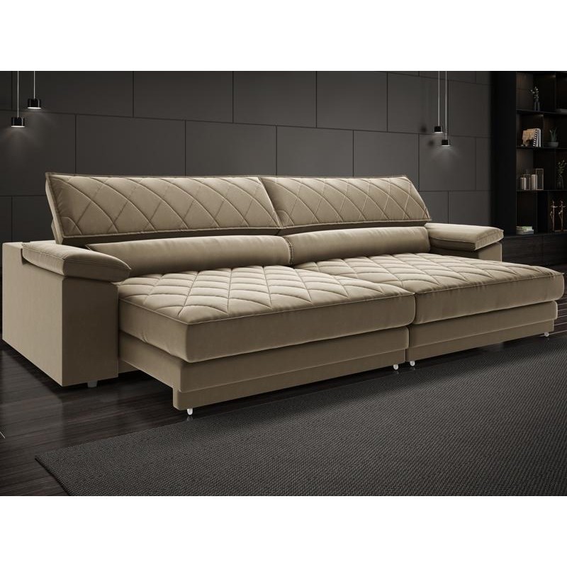 Sofá de Duplo Molejo com Carregador USB, Retrátil e Reclinável Valencia 2,90m Veludocristal Castor- NETSOFAS