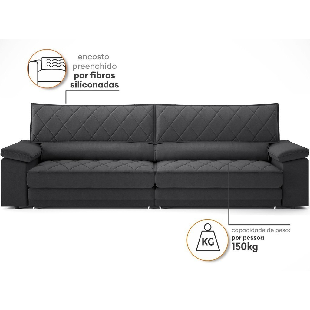 Sofá de Duplo Molejo com Carregador USB, Retrátil e Reclinável Viena 2,10m Linho Soft Grafite- NETSOFAS
