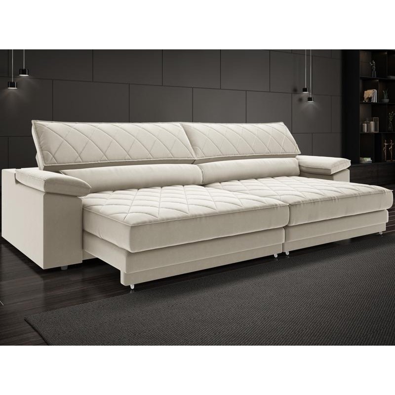Sofá de Duplo Molejo com Carregador USB, Retrátil e Reclinável Viena 2,90m Veludocristal Areia- NETSOFAS