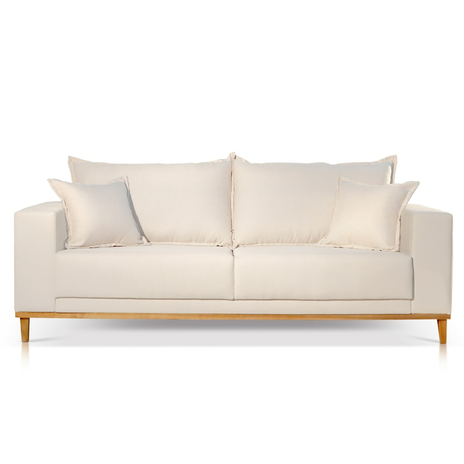 SOFÁ FIXO ARGOS O sofá Argos possui base fixa em madeira maciça, design do estofado com desenho limpo, de linhas retas e se adequa muito bem a diversos estilos, sendo um sofá clássico, de muito bom gosto! A Castellar Móbile é uma empresa que nasceu com o intuito de oferecer comodidade e qualidade. Nos dedicamos a suprir o desejo de nossos clientes, com clareza nas informações e agilidade nos processos. A beleza e sofisticação de nossos produtos vem como gratidão por essa parceria. Dimensões: - Altura: 90cm - Profundidade: 90 cm - Comprimento total: 2,00m - Largura do braço: 20 cm Especificações técnicas: - Tipo de encosto: Almofada solta com fibra 100% siliconada - Tipo de assento: Assento com espuma D28 Soft e manta acrílica de gramatura 200. Em cada assento são colocadas molas Bonnel o que proporciona maior conforto. - Material da estrutura: Madeira reflorestada, seca e imunizada - Pés em eucalipto na cor castanho Instruções de cuidados e limpeza: - Nossos produtos são indicados para área coberta, a exposição ao sol ou chuva podem danificá-los - Para limpar, utilize um pano levemente umedecido, seguido de pano seco - Não utilizar escovas, produtos químicos ou semelhantes Atenção: - O anúncio contém imagens reais do produto mas a tonalidade pode variar de acordo com a tela utilizada ou iluminação no dia da foto. - Certifique-se que, de acordo com as dimensões do produto, o mesmo terá fácil acesso até o local de uso. Evite o transtorno para acessar elevadores ou escadas e a necessidade de serem içados ou desmontados.