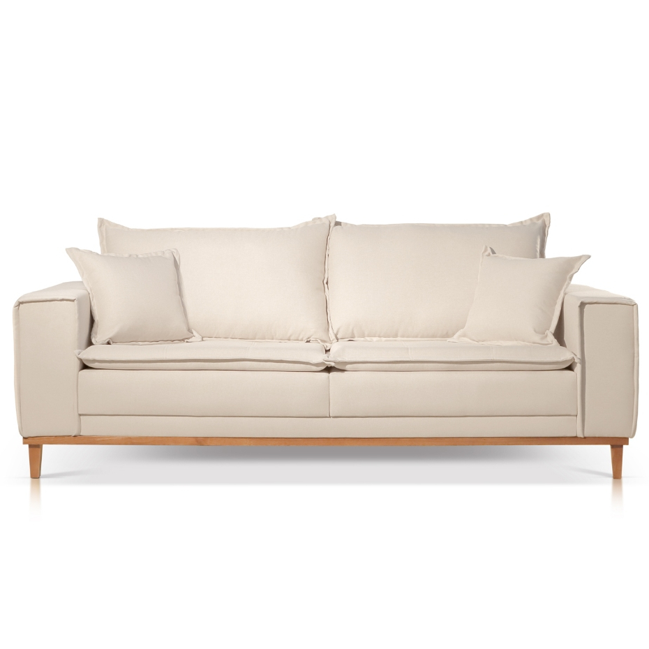 SOFÁ ORFEU LUXO CASTELLAR MÓBILE Com um visual elegante e moderno, o sofá conta com detalhes que valorizam o seu ambiente. Composto com capa nos braços, a base inteira com pés delicados, almofadas e o assento com pillow top capitonê, esse tipo de móvel oferece um maior conforto e beleza. DIMENSÕES: - Altura: 90cm - Profundidade: 90cm - Comprimento: 200cm - Largura dos braços: 20cm (Cada) - Altura do assento: 45cm CARACTERÍSTICAS: - Tipo de assento: Assento com espuma D28 Soft no Pillow de 80 mm de espessura e manta acrílica de gramatura 200. Em cada assento são colocadas molas Bonnel o que proporciona maior conforto. - Tipo de encosto: Almofada solta com fibra 100% siliconada. -Base em eucalipto na cor castanho. - Quantidade de pés: 4 pés na base - Material da estrutura: Madeira reflorestada, seca e imunizada. - Almofadas decorativas incluídas INSTRUÇÕES DE CUIDADOS E LIMPEZA: - Nossos produtos são indicados para área coberta, a exposição ao sol ou chuva podem danificá-los - Para limpar, utilize um pano levemente umedecido, seguido de pano seco - Não utilizar escovas, produtos químicos ou semelhantes ATENÇÃO: - O anúncio contém imagens reais do produto mas a tonalidade pode variar de acordo com a tela utilizada ou iluminação no dia da foto. - Certifique-se que, de acordo com as dimensões do produto, o mesmo terá fácil acesso até o local de uso. Evite o transtorno para acessar elevadores ou escadas e a necessidade de serem içados ou desmontados.