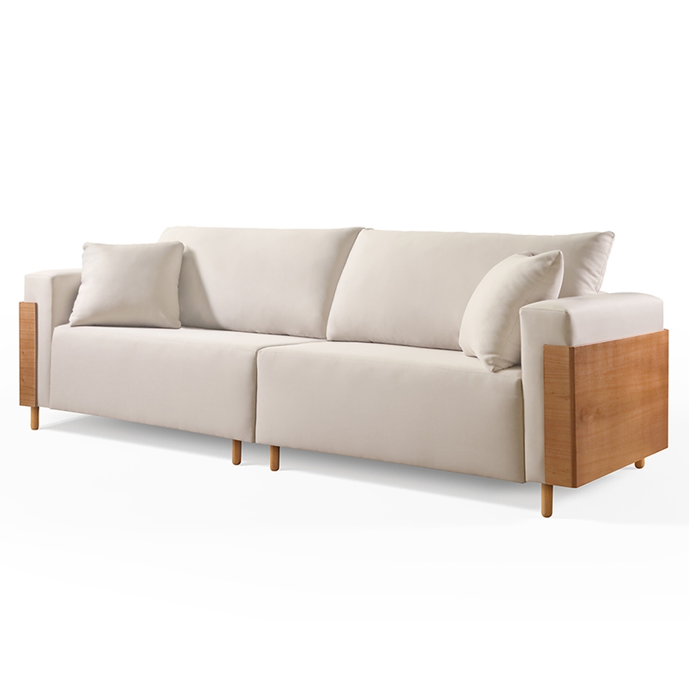 SOFÁ HEITOR Modelo imponente e contemporâneo que combina a robustez dos braços laterais em madeira maciça com a elegância do estofamento, apoiado por pés metálicos discretos. Ideal para quem busca um design marcante e sofisticado, ele é aconchegante e possui uma presença que vai elevar a decoração do seu ambiente para outro nível, unindo funcionalidade e arte! A Castellar Móbile é uma empresa que nasceu com o intuito de oferecer comodidade e qualidade. Nos dedicamos a suprir o desejo de nossos clientes, com clareza nas informações e agilidade nos processos. A beleza e sofisticação de nossos produtos vem como gratidão por essa parceria. Dimensões: · Altura: 90cm · Profundidade: 90cm · Comprimento: 160cm · Largura dos braços: 20cm Especificações técnicas: · Almofadas decorativas incluídas · Tipo de encosto: Almofada solta com fibra 100% siliconada · Tipo de assento: Assento com espuma D28 e manta acrílica de gramatura 200 · Material da estrutura: Madeira reflorestada, seca e imunizada · Braços laterais em madeira maciça com pés metálicos discretos ou madeira Atenção: O anúncio contém imagens reais do produto mas a tonalidade pode variar de acordo com a tela utilizada ou iluminação no dia da foto Certifique-se que, de acordo com as dimensões do produto, o mesmo terá fácil acesso até o local de uso. Evite o transtorno para acessar elevadores ou escadas e a necessidade de serem içados ou desmontados.
