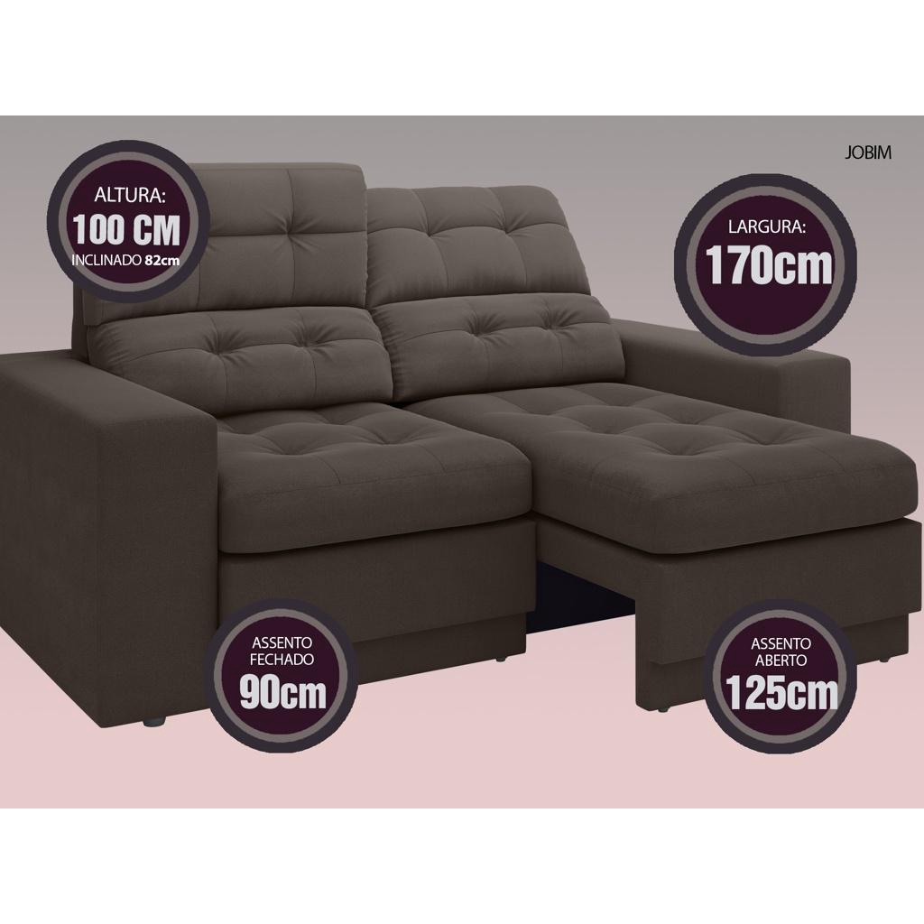 Sofá Jobim 1,70m Assento Retrátil e Reclinável Velosuede Chocolate - NETSOFAS