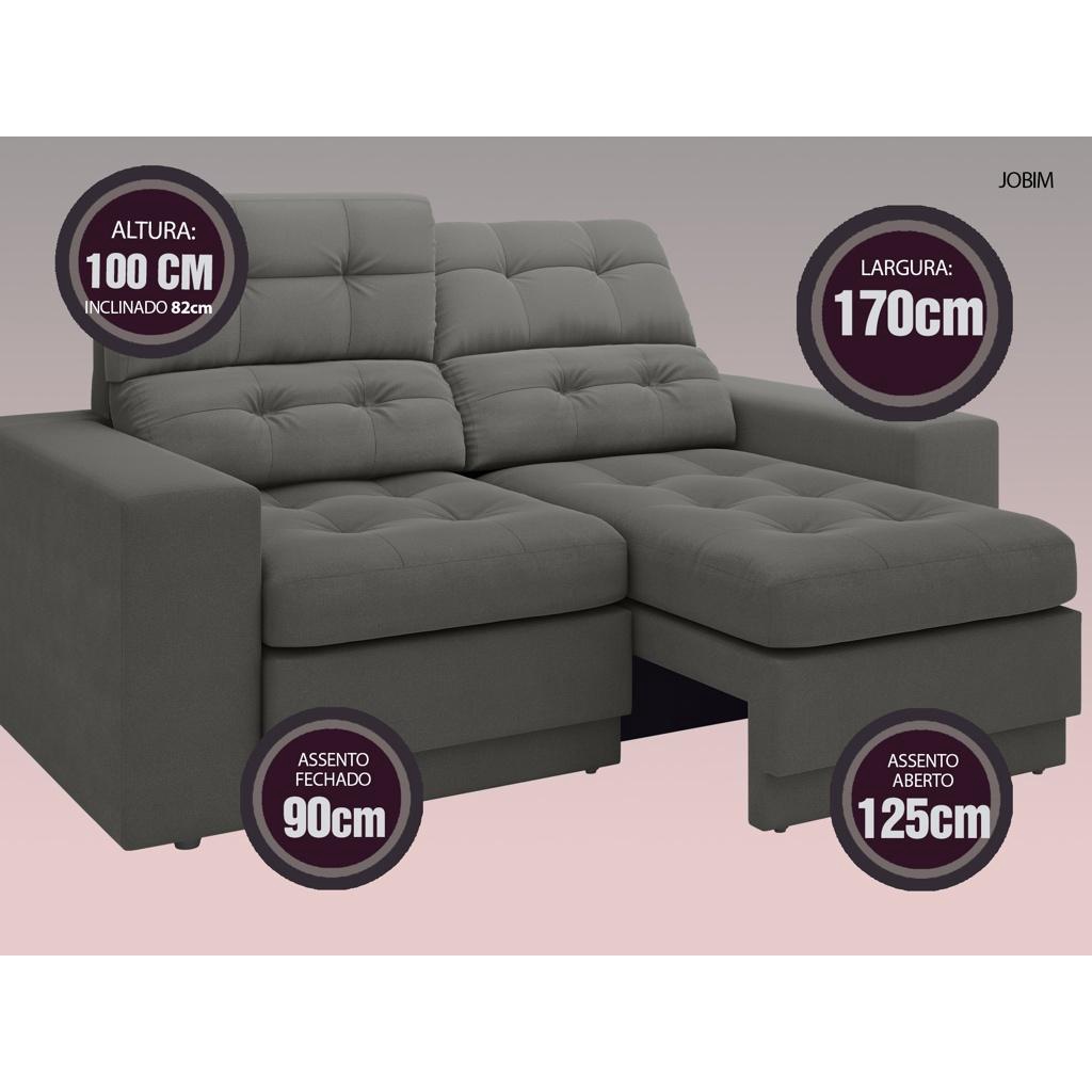 Sofá Jobim 1,70m Assento Retrátil e Reclinável Velosuede Cinza - NETSOFAS