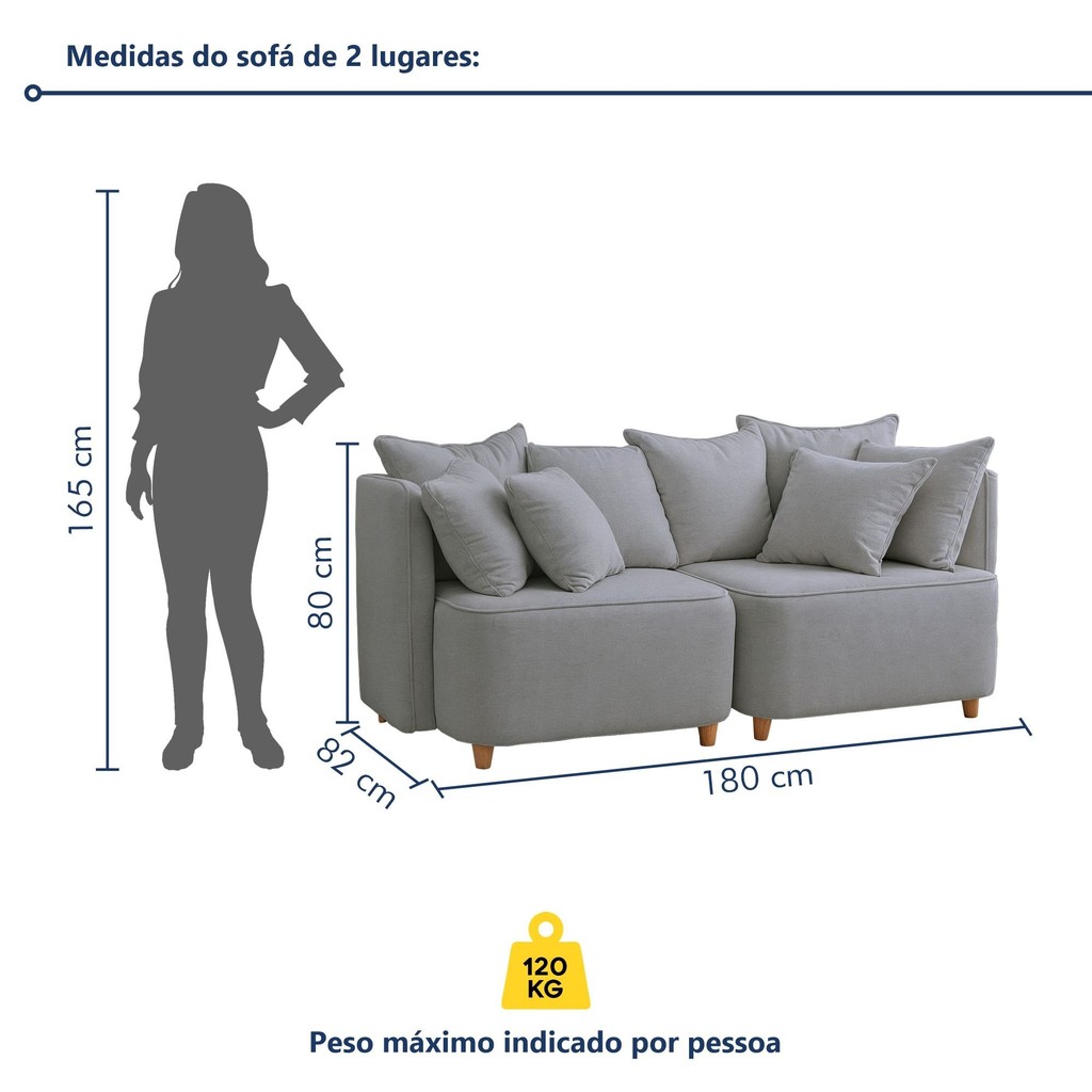 Estofado living bipartido e arredondado. Conta com almofadas soltas e preenchidas com fibra de silicone. Sua estrutura é de madeira de eucalipto com molas bonnel flex e espuma HR 33. Seus pés são de madeira , incluindo os pés centrais. Estilo: Moderno Peso (kg): 56 Garantia: 03 Meses Altura (cm): 80 Largura (cm): 180 Possui Pés: Sim Pet Friendly: Não Tipo de Mola: Molas Bonnel Tipo de Sofá: Sofás Comuns Altura dos Pés: 7 Modelo do Sofá: Sofá Bipartido Possui Rodízio: Não Suporta Até (kg): 120 Profundidade (cm): 82 Tipo de Encosto: Fixo Material dos Pés: Madeira Altura do Encosto: 44 Nível de Conforto: Intermediário Origem do Produto: Nacional Ambiente Principal: Sala de Estar Resistente à Chuva: Não Tecido Predominante: Linho Densidade do Assento: D-33 Densidade do Encosto: D-18 Enchimento do Assento: Espuma Enchimento do Encosto: Fibra Siliconada Quantidade de Lugares: 2 Serviço Impermeabilização: 102610509 Acompanha Almofadas Extras: 4 Possui Percintas Elásticas: Sim Altura do Assento até o Chão: 43 Marca: Ecosono Cor: Cinza Cor do Produto: Cinza Itens Inclusos: 1 Sofá e 1 Manual de Instrução. Cor Predominante: Cinza