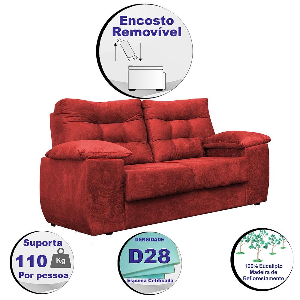 Sofá Luxemburgo 2 Lugares 1,52m Tecido Suede Vermelho