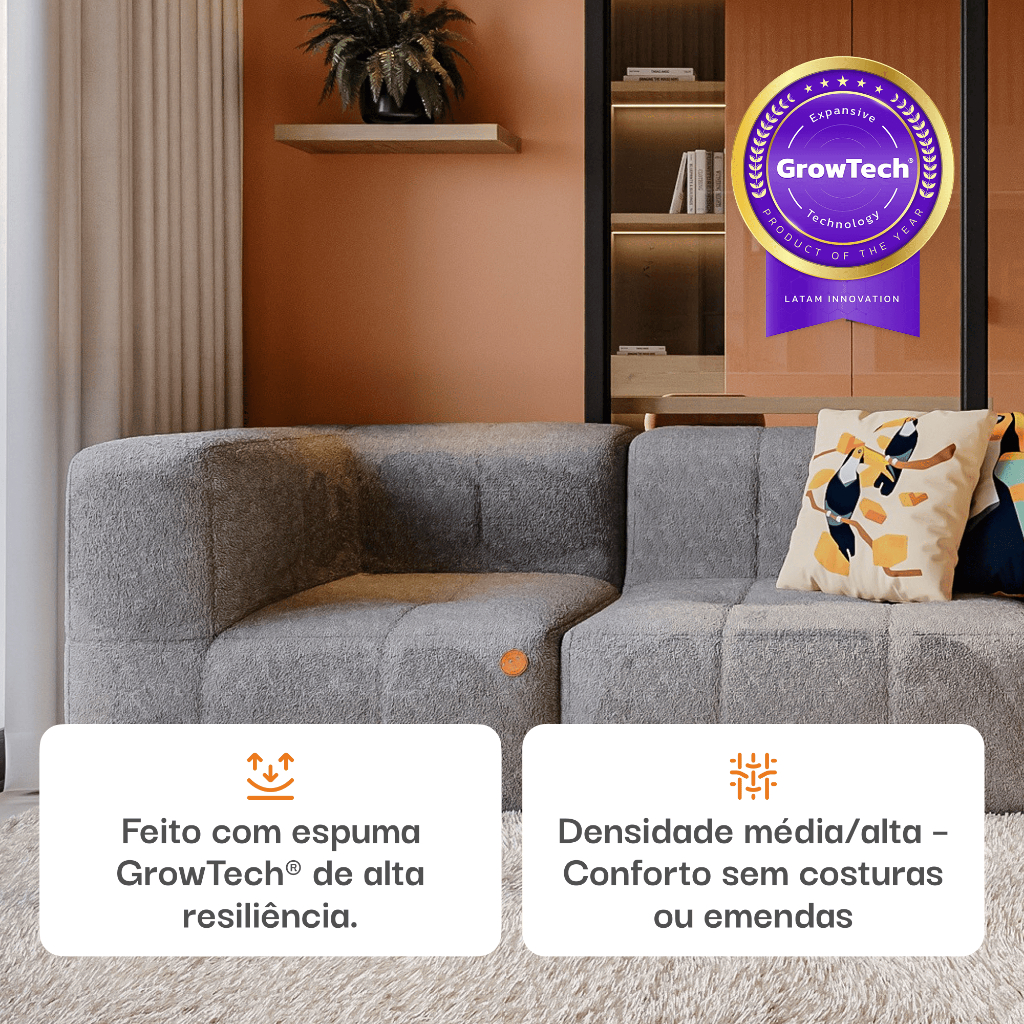 Por que Escolher o Sofá na Caixa? Transforme seu ambiente com um sofá que combina inovação, conforto e estilo. Ideal para quem busca praticidade sem renunciar a sofisticação. Seja um espaço compacto ou amplo, o Sofá Modular Sofá na Caixa é a solução perfeita para sua casa. 🛋️Conforto em primeiro lugar: O Sofá modular possui um assento firme na medida certa, com densidade média/alta para manter seu corpo relaxado e estável por horas. 🍃 Tecido leve ao toque: Revestido com Boucle LuxBlend o Sofá na Caixa possui uma sensação sedosa ao toque, beleza estética e alta durabilidade pet friendly. 🏡 Estilo e Design: O Sofá na Caixa possui um conceito Moderno e minimalista, com cores neutras para se adequar a qualquer ambiente. 🧩 Versátil e Modular: O design modular do Sofá na Caixa permite um sofá para o dia a dia totalmente configurável com formas diferentes para todas as situações. ✔️ Segurança e garantia: Compra 100% segura pelo seller e pelo marketplace – Com garantia de 3 meses e 7 dias para testar na sua casa ⏳ Durabilidade: Possui uma estrutura Monolítica com espuma de alta resiliência além da ausência de costuras ou emendas internas, garantindo consistência e resistência superior. 📦 Entrega Compacta: Chega em caixas pequenas para facilitar o transporte e evitar esforço. 🔗 Fixação Segura: Mecanismo de junção **Fast Click** para estabilidade e ocultamento eficiente. Conforto Revolucionário com Tecnologia GrowTech® Desenvolvido com espuma exclusiva GrowTech®, nosso sofá oferece um conforto inigualável. Criada com matérias-primas de alta qualidade e livre de isopor, essa tecnologia garante durabilidade, maciez e suporte ideal, proporcionando uma experiência de longa durabilidade. Ficha Técnica - Sofá Modular Sofá na Caixa • Entrega Compacta e Montagem Fácil • Entregue em caixas compactas: Facilita o transporte e evita danos. • Montagem descomplicada: basta abrir a caixa, e o sofá se expande automaticamente. • Junção dos módulos: Realizada através de Fast Click na parte inferior do produto, sendo eficiente e ocultando o mecanismo. Materiais da estrutura • Preenchimento e estrutura: Ausência de costuras ou emendas internas, preenchido apenas por espuma GrowTech® • Tecido de Revestimento: Revestido com Boucle LuxBlend Premium Dimensões e Configurações • Dimensão total do módulo: Altura 65cm x Largura 86cm x Comprimento 86cm • Ideal para salas de até 25 m² em sua configuração completa (até 6 módulos). • Disponível em configurações de 1 a 6 módulos, perfeitos para criar ambientes aconchegantes ou espaçosos. Adicione módulos avulsos onde e quando quiser. Benefícios Adicionais • Garantia Estendida: 3 meses contra defeitos de fabricação. • Teste sem Compromisso: 7 dias para experimentar e devolução facilitada. • Sustentabilidade: Produzido com materiais ecologicamente responsáveis.