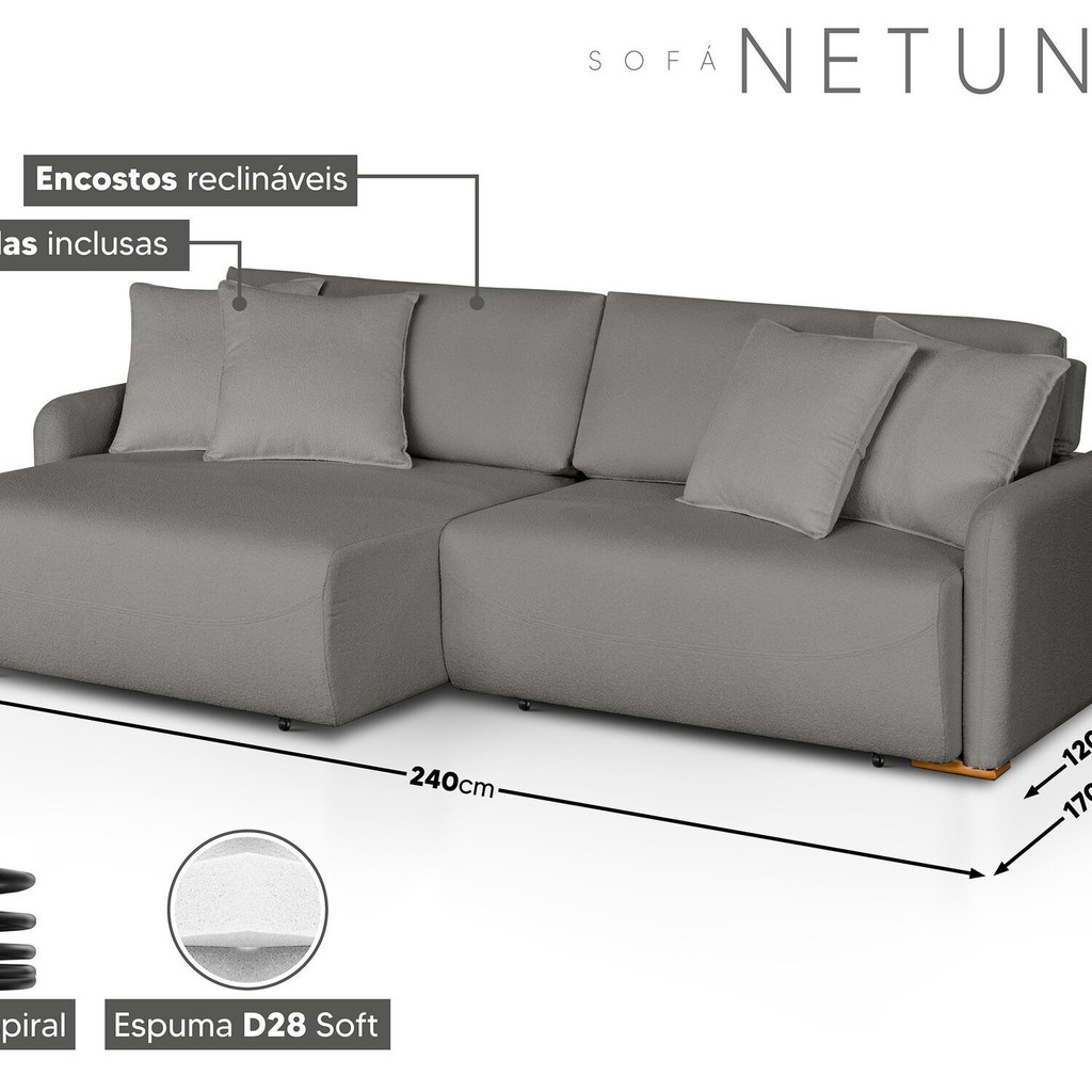 Sofá Netuno - Retrátil / Reclinável 240 Cm Linho Grafite