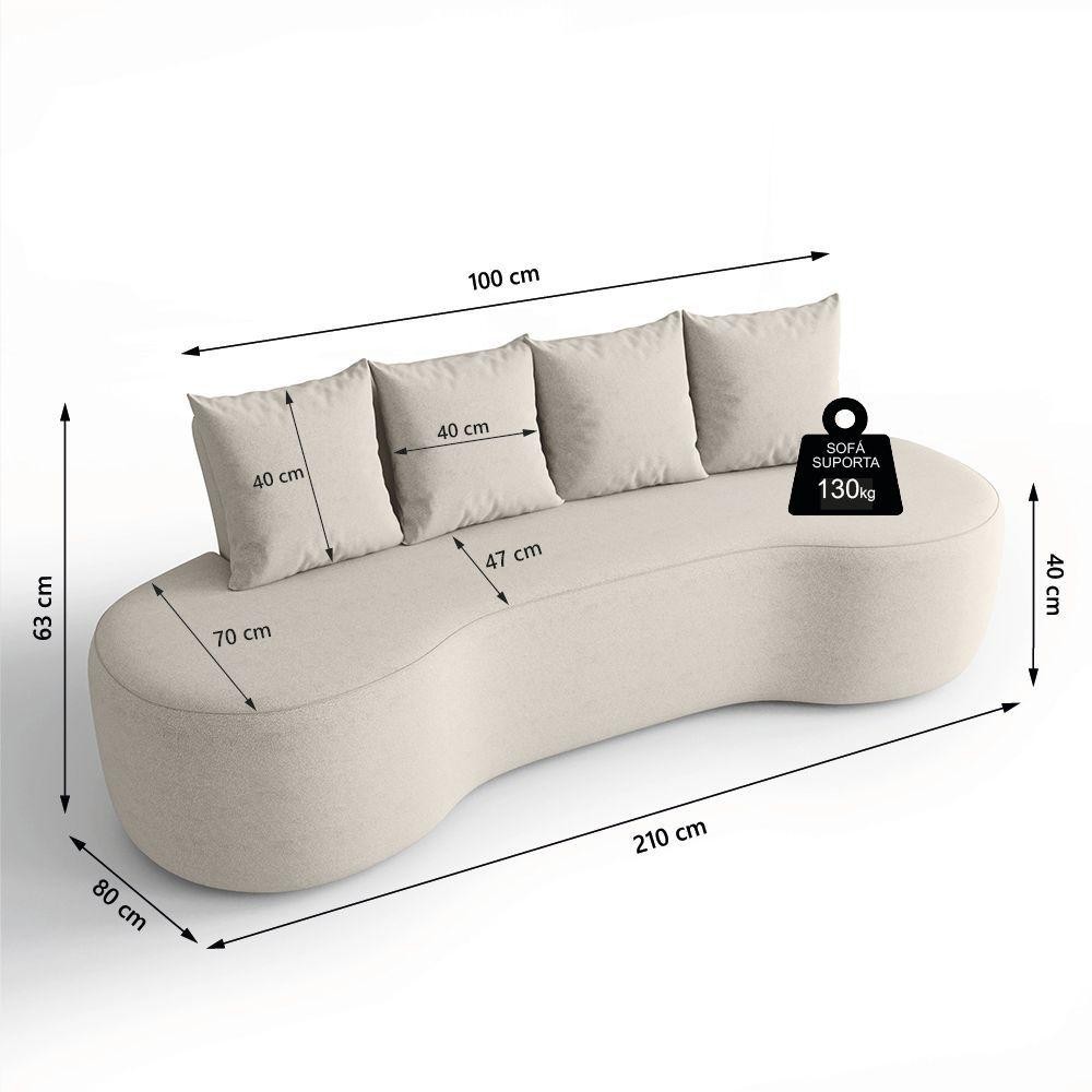 Sofá Orgânico Curvo 2,10m 3 Lugares Com Almofadas Ibiza Bexs Bege