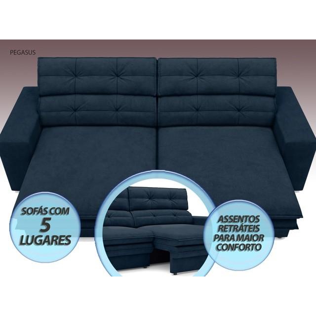 Sofá Pegasus 2,50m Assento Retrátil e Reclinável Velosuede Petróleo - NETSOFAS