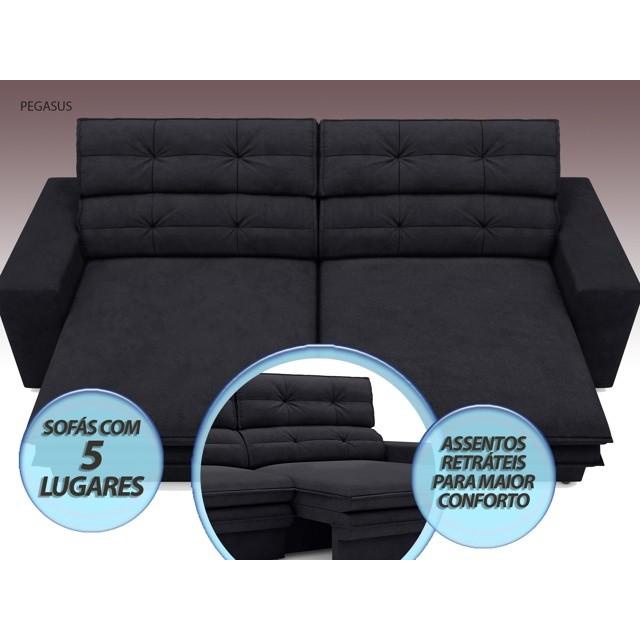 Sofá Pegasus 2,50m Assento Retrátil e Reclinável Velosuede Preto - NETSOFAS
