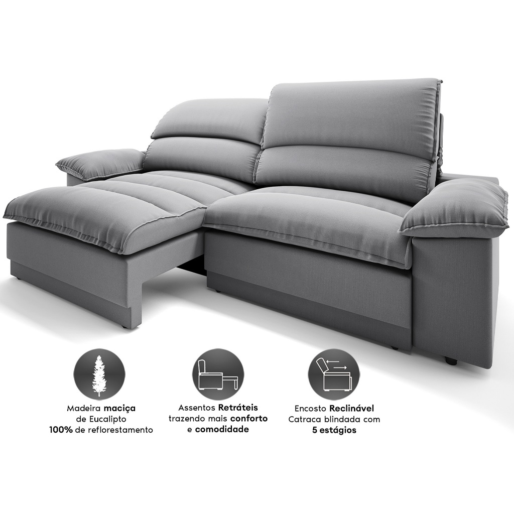 Sofá Plaza 2,00m com Molas no Assento Retrátil e Reclinável Velosuede - NETSOFAS