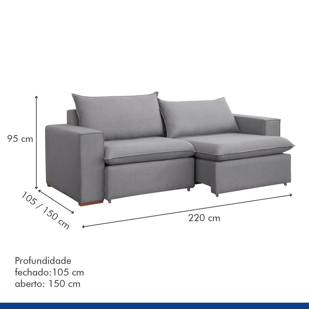 Sofá Retrátil 220cm Barcelona Linho Cinza