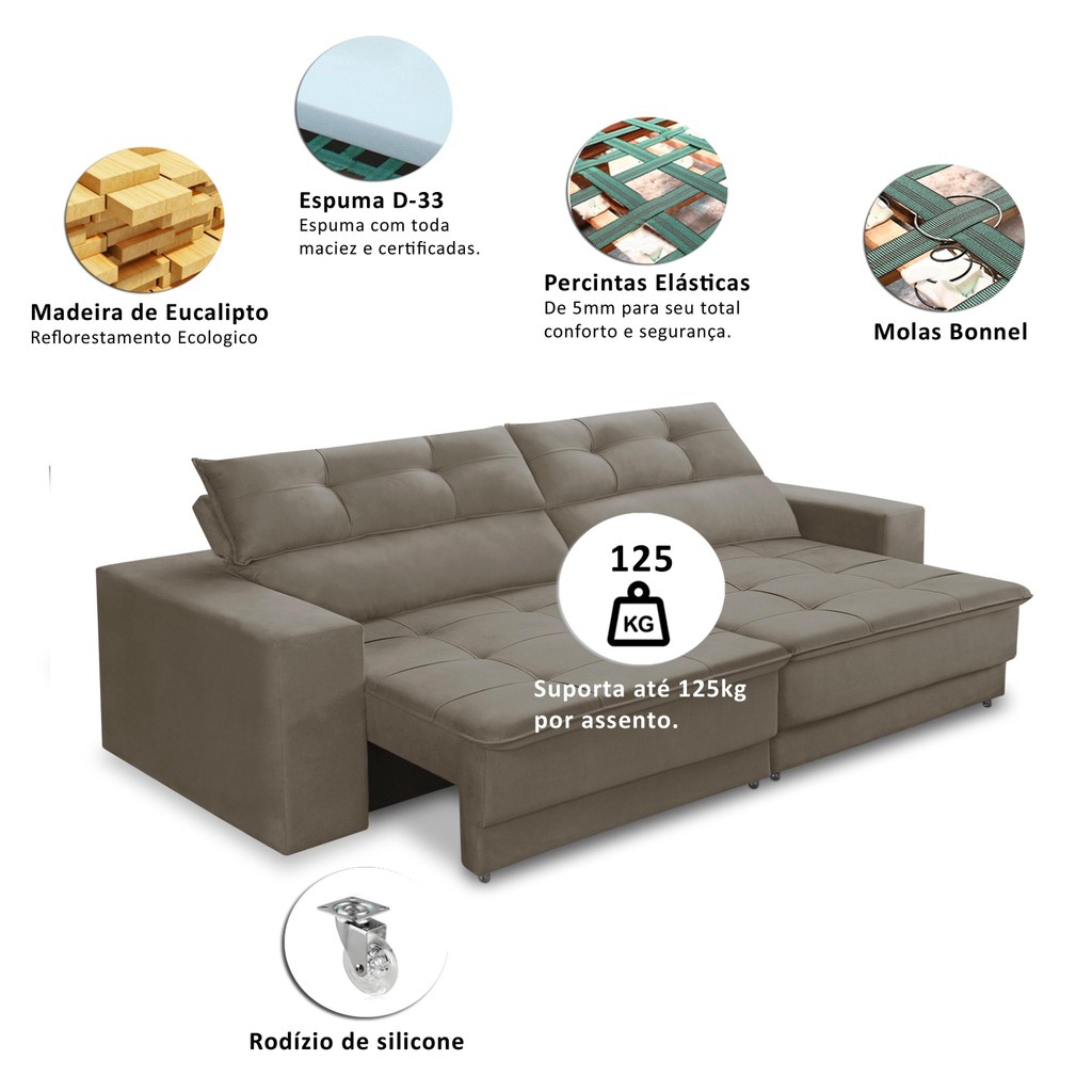 Sofá Retrátil e Reclinável 2 lugares 1,50m com Molas Emily Suede Adonai Estofados